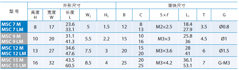 PMI银泰微小型直线导轨MSC12LM滑块是一款加长型微小型滑块,采用不锈钢材质,滑块的尺寸为47.6*27,滑块上有4个M3的螺纹孔,其孔距为20*20,MSC12LM滑轨的安装孔距为25,MSC12LM滑块与滑轨的组合高度为13。所有尺寸完全与台湾上银直线导轨MGN12H相同。两者之间可相互替换,在防尘方面,银泰直线导轨比上银直线导轨做得更佳出色。性价比更高.